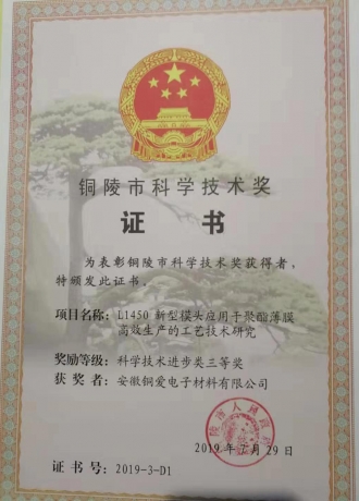 銅陵市科學(xué)技術(shù)三等獎
